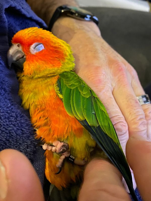 Our resident Sun Conure and undisputed Boss of the Aviary! He may be tiny, but this little firecracker runs the show with his bold squawks, cuddle-loving charm, and hilarious antics. Clementine is all sass, snuggles, and sunshine—get ready to fall in love with the cutest personality on two wings.